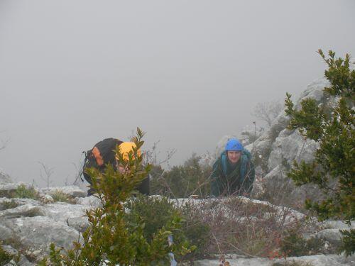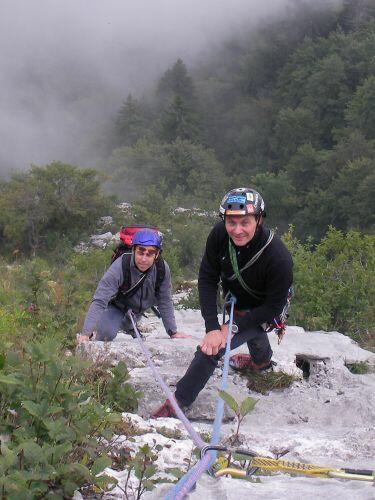 Le temps est maussade. Nous en profitons pour réviser: exercice de remontée sur corde. Photo J.C. Taïani