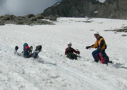 Ecole d'assurage dynamique sur neige.