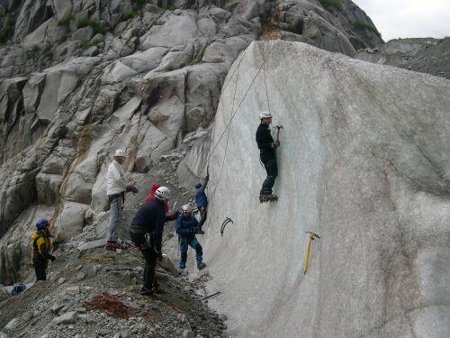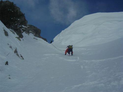 Les plus prudents commencent à crampons, mais la corde ne fait que 30 mètres, il va falloir se lancer !